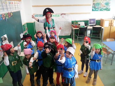 Bob Esponja, piratak, arrantzaleak… atzo Karmengo Ama ikastetxeko haurrak ez ziren ohiko itxurarekin joan ikastetxera, eta hainbat pertsonaietaz mozorrotu ziren. Desfilea egin zuten.