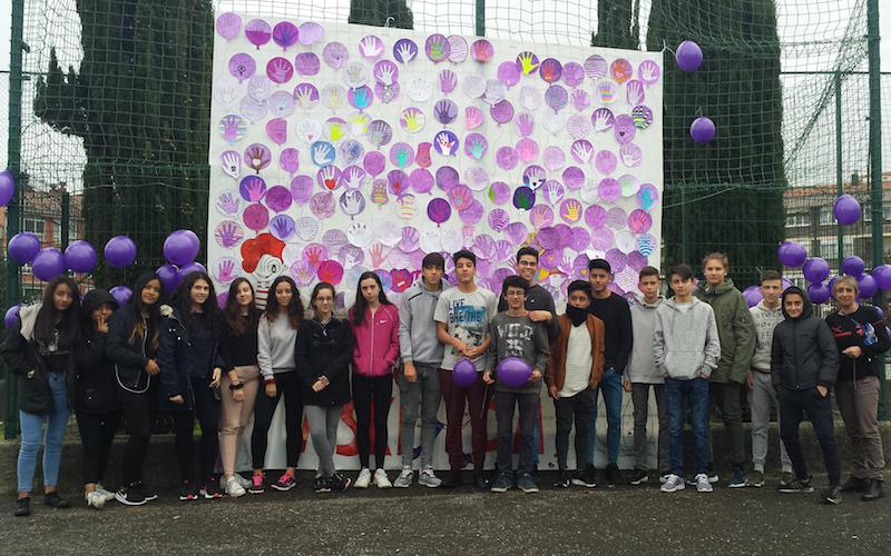Irungo Hirubide ikastetxean emakumeen kontrako indarkeriaren gaia landu dute asteon. Murala egin, eta indarkeria horren kontra daudela adierazi dute.