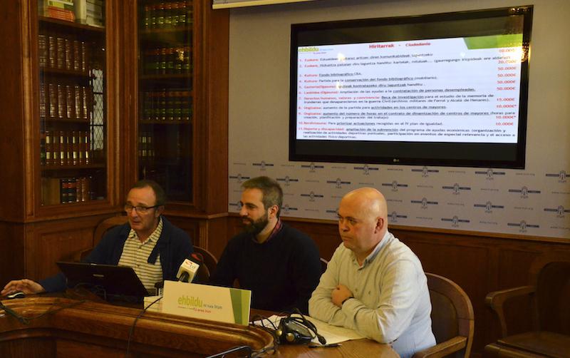 Lehenik, aurtengo aurrekontuak “erabat kontinuistak” direla salatu dute, baita eredu horrekin alderdiak bat egiten ez duela. Gainera, gazteak, helduak, lana, kultura, memoria, euskara, ingurumena eta etxebizitza alderdiaren ardatz nagusiak direla nabarmendu nahi izan dute. Aurreko urteetan bezala, udal gobernuak aurkeztutako proposamenei zenbait zuzenketa gehitu dizkiote. Hiru bloke nagusitan banatu dituzte proposamenak: hiria espazio fisiko bezala, hiritarrak eta hiritarrak uztartzen dituen ekonomia jasangarria. Hiru bloke horien baitan gauzatu dituzte proposamen guztiak.