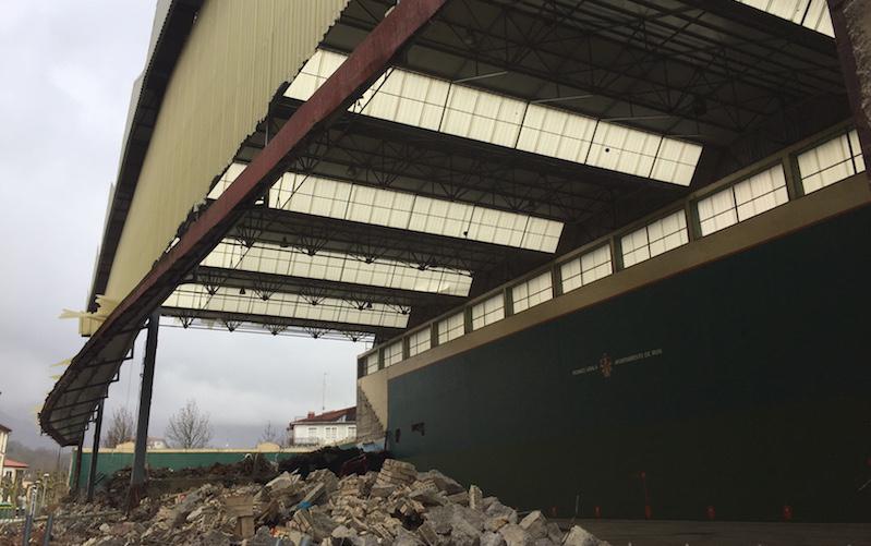 Orain arte, alboko frontoi txikiaren estalkia eta fatxada bota dituzte, eta Junkal kaleko pareta zein harmailak ere eraitsi dituzte. Jose Antonio Santano Irungo alkatea obrak bisitatzen egon da eta jakinarazi duenez, 16 hilabeteko iraupena izango dute. Horretarako, udalak 4,5 milioi euroko inbertsioa egingo du.