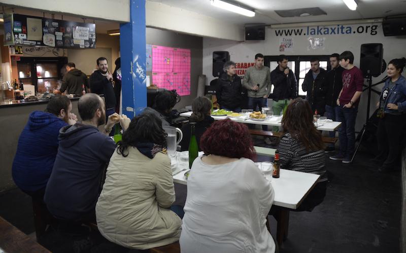 Hogeita hamar bat lagun elkartu dira gaztetxean, prest Txingudiko eta Gernikako bertsolariak entzuteko. Bidasotik Igauri Lopetegi, Irati Alcantarilla eta Manu Goiogana aritu dira; Gernikatik, berriz, Koldo Gezuraga, Aitor Zarraga eta Asier Galarza. Bertso saioaz gain, 21:30tatik aurrera, Oscar Benas, Instr Combo, Red Baleine eta DJ Leku eta DJ Zumitrenkok musika jarriko diote gaurko festari. Ziur gaueko ordu txikietara luzatuko dutela festa Lakaxitan.
