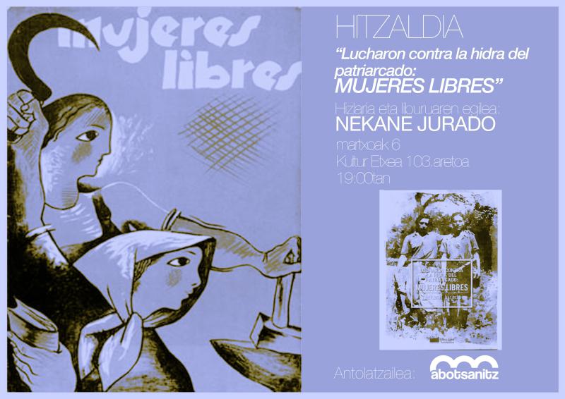 - Nekane Juradoren Lucharon contra la hidra del patriarcado: mujeres libres liburuaren aurkezpena, gaztelaniaz. Abotsanitz Herri Batzarrak antolatuta. 19:00etan, Kultur Etxeko 103 gelan.
