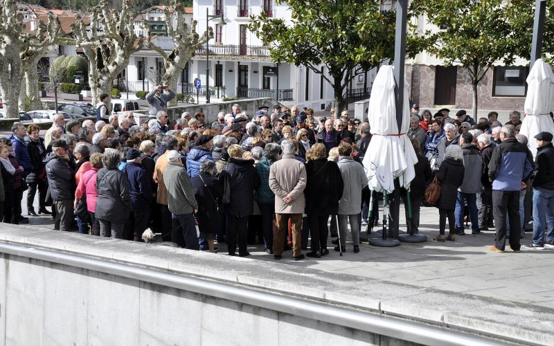 Hondarribiko pentsiodunak eta erretiratuak Damarri plazan elkarretaratu ziren atzo, pentsio duinak exijitzeko.