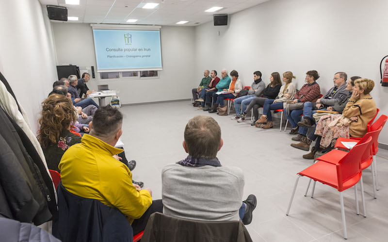 Azaroko herri galdeketari begira jarri dira dagoeneko Irungo Hartu Hitza plataformako kideak. Joan den martxoaren 24an Palmera Montero gunean elkartu ziren, eta bertan galdera zehazteko aurrera eramango duten prozesua definitu zuten.