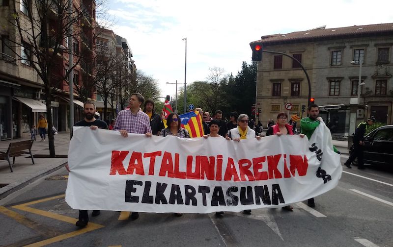 Politikariei babes guztia adierazi zioten manifestazio guztian zehar, eta “preso politikoen askatasuna” eskatzeaz gain, Espainiako Estatuari “estrategia errepresiboa gelditzea” exijitu zioten. Horrez gain, “politika egiteko eskubidea” defendatu zuten. “Euskal zein katalan herriek burujabe izateko duten eskubidea aldarrikatzen dugu eta beraz, haien etorkizunaren jabe izateko eskubidea”, adierazi zuten antolatzaileek.