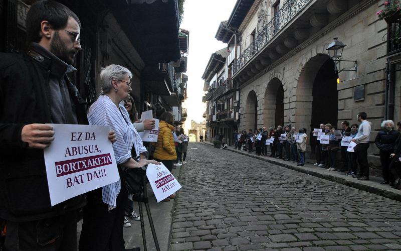 Mugimendu feministak 19:00etarako egina zuen deia Espainiako Estatuko udaletxeen aurrean protesta egiteko. Hondarribian, ordea, 20:00etan ere elkarretaratu ziren, Bidasoaldeko Elkarte Feministak deituta, EH Bilduk eta LABek Kultur Etxean antolatuta zuten ekitaldiaren ondoren.