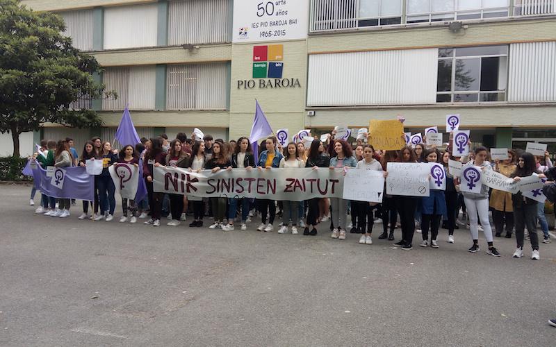 Era berean, herritarren elkarretaratzeez gain, Irungo Pio Baroja institutuko ikasleek ere elkarretaratzea egin dute gaur goizean. ‘Nik sinisten zaitut’ lelopean, ikasleek ere elkartasun guztia bidali diote emakumeari.