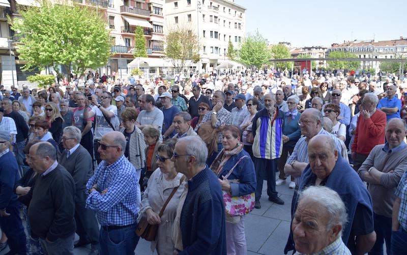 Larunbatean Donostian Gipuzkoako pentsiodunek egindako manifestazio erraldoiarekin jarraitu nahi izan dute gaur Txingudiko Pentsiodunen Mugimenduko kideek. Enegarrenez, San Juan plazan ehunka pentsiodun elkartu dira; azken bost hilabeteotako mobilizazioekin jarraitzeko prest daudela argi eta garbi utzi dute.
