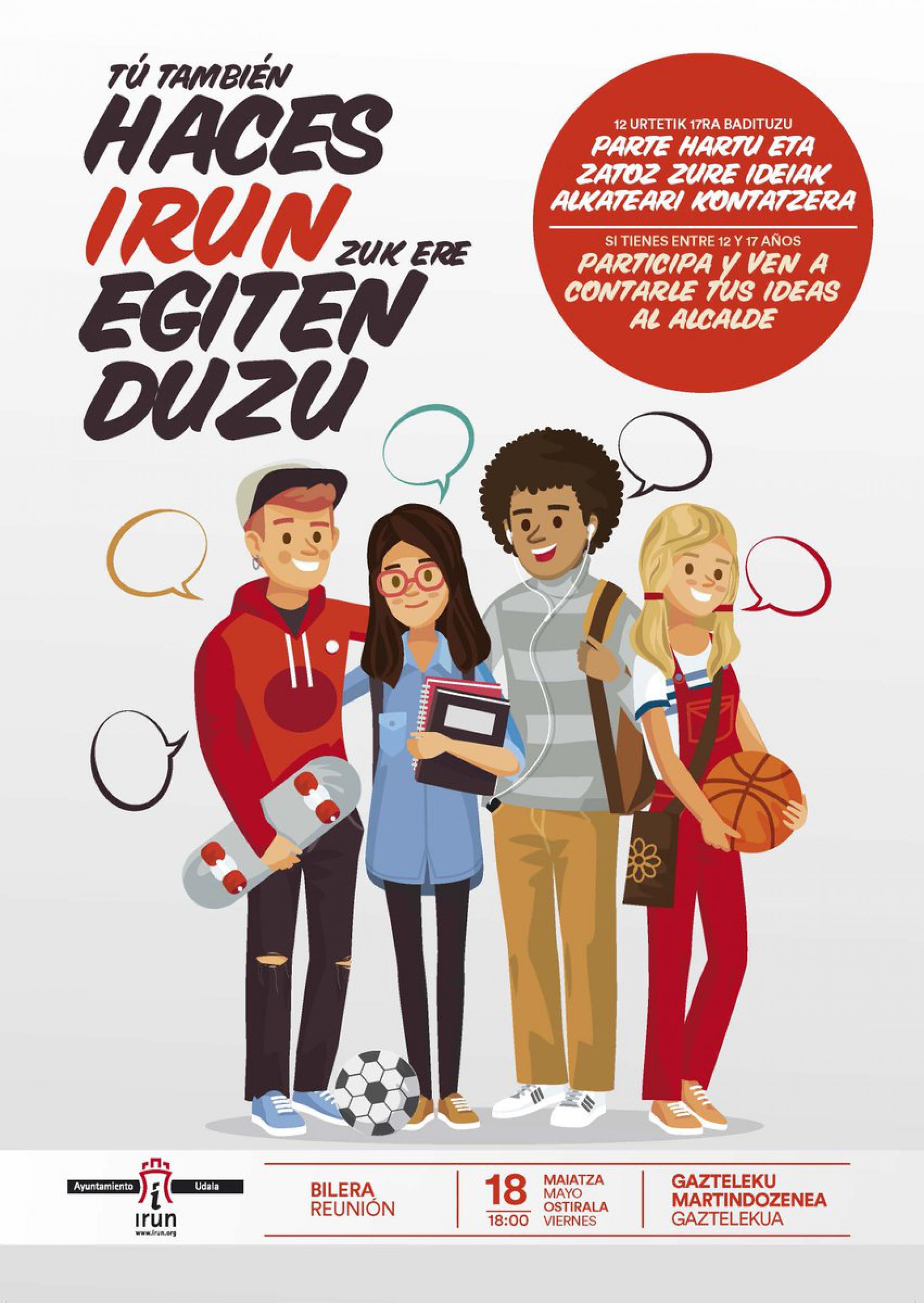 ‘Irun zuk ere egiten duzu’ izenez titulatu dute saioa eta udaletik jakinarazi dutenez, 18:00etan hasiko da. Gazteria sailetik Irungo gazteen artean parte hartzeko deialdia luzatu dute.