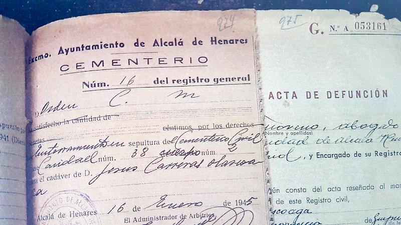 1945eko urtarrilaren 16an hil zuten Jesus Carrera Olaskoaga, eta handik bi egunera lurperatu