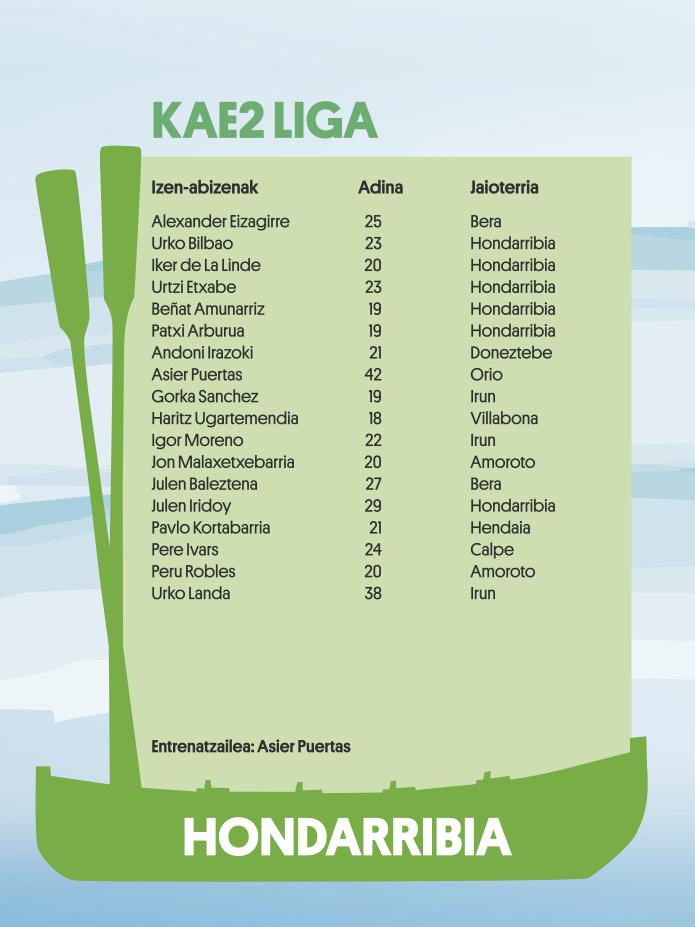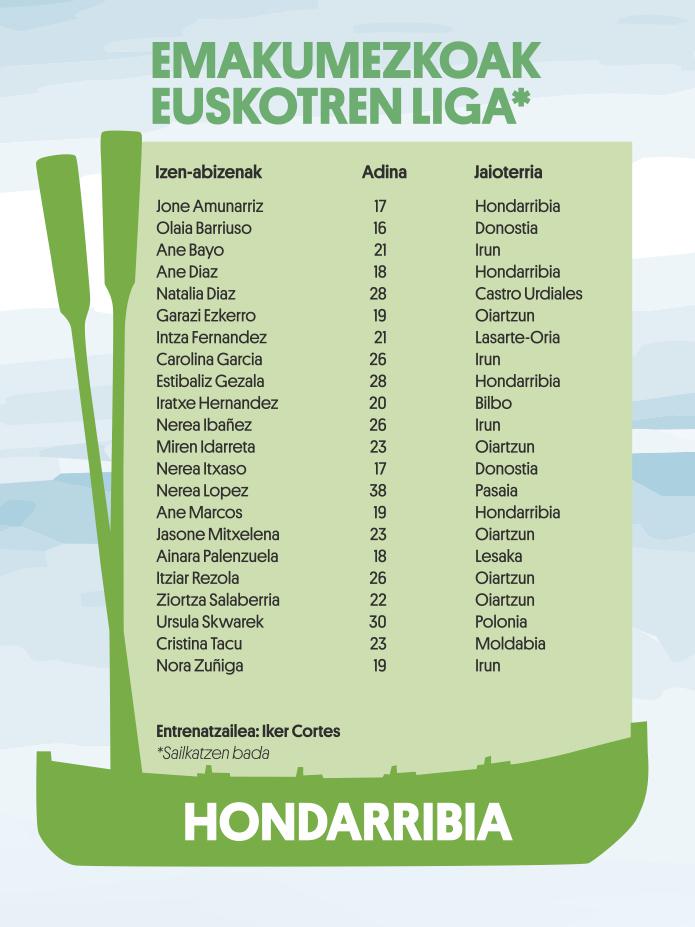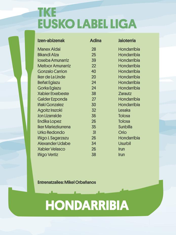 Hondarribia Arraun Elkarteak orotara hiru traineru aurkeztuko ditu bihar. Honakoak dira horien partaideak: