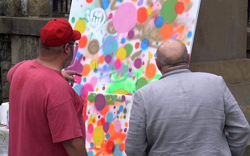 Bideosare enpresako arduradun Markos Soduperen laguntzarekin. Prozesu osoa jasotzen dute, eta parte hartzen dutenen esperientzia biltzeko galderak egiten dizkiete: “Elkarrizketa egiten diegu plano motzean, hala, koadroaren barruan sartzen dira, paisaiaren parte bihurtzen dira. Esperientzia horretaz, arteaz, koloreez… eta artearen herriko egoeraz galdetzen diegu”.