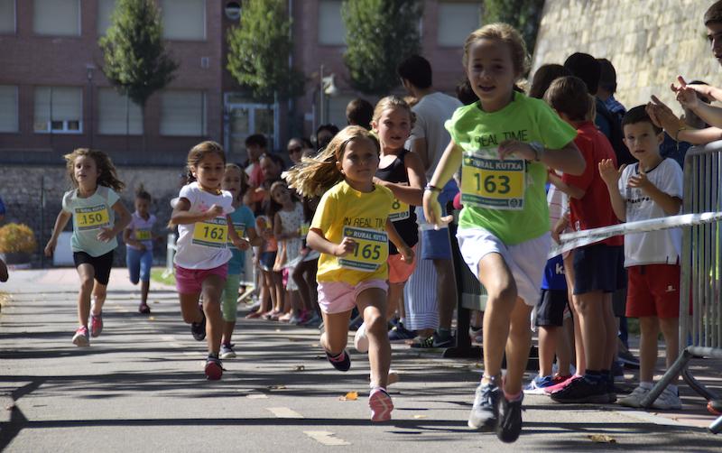 Etxeko txikienek korrika egiteko trebetasuna erakutsi dute, batzuek bakarrik eta besteek gurasoen laguntzarekin.