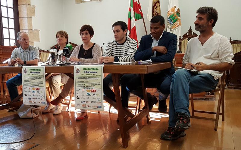 Gaur goizean aurkeztu dute, udaletxeko arto nagusian, eta bertan izan dira Arantxa Berrotaran Gizarte Zerbitzuetako zinegotzia, eta igandean mahai informatiboa jarriko duten bost taldetako ordezkariak: Jesus Mari Guerra (