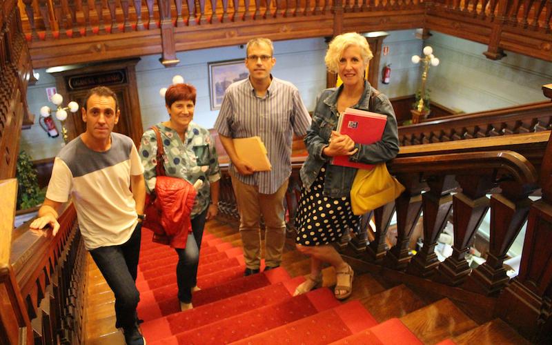 Ion Arruabarrena eta Ana Elosegi psikologoak, udaleko Irune Hernandez eta Sergio Corchonekin aurkezpenean.