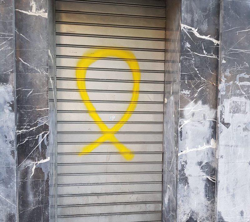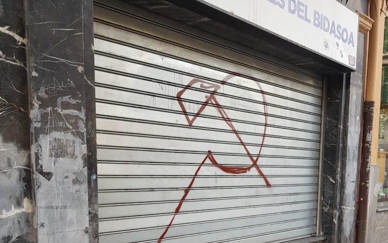 Irungo PPren egoitzan pintaketak agertu ziren atzo goizean: laxo horia, batetik, eta igitaia eta mailua, bestetik. Borja Semper PPko legebiltzarkide irundarrak salatu egin du ekintza hori