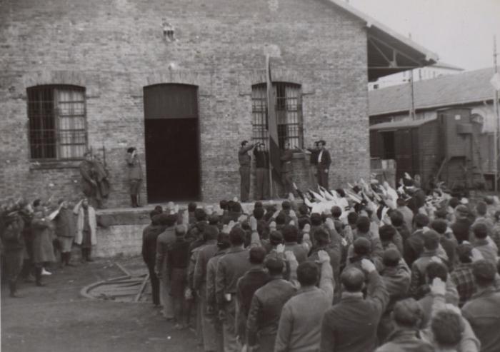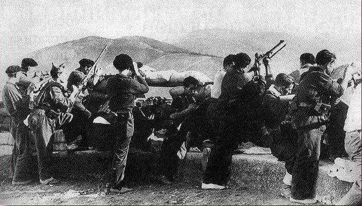 Gernika Bataloia 1945eko apirilaren 19an, Soulac sur Mer-en (Frantzia). Irudiaren erdian ageri da Kepa Ordoki komandantea.