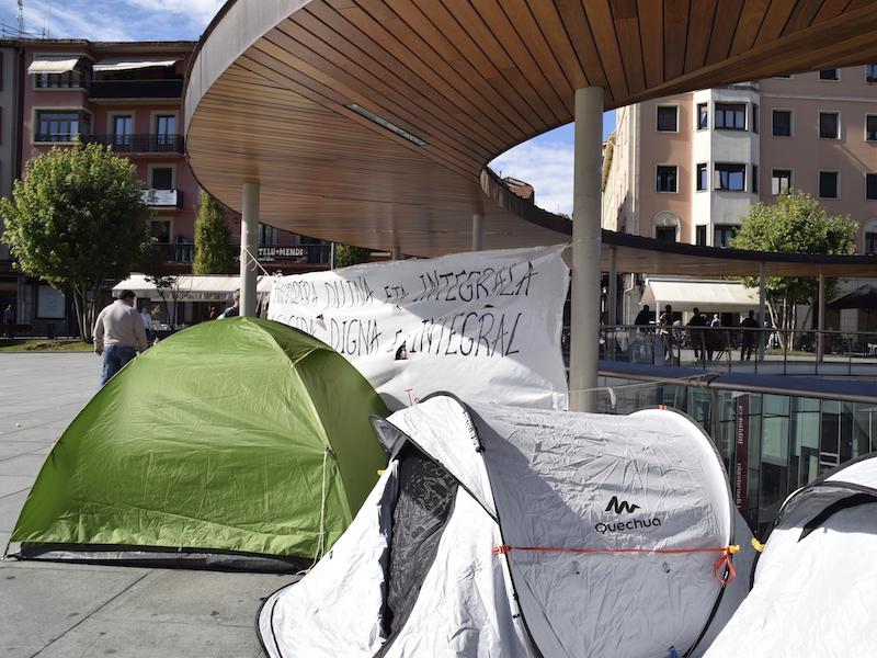 Joan den astetik ari dira migratzaileak Martindozenean eta Ospitale Zaharrean lotan eta otorduan hartzen, baina egunez ezin dute bertan geratu. Herritar sareak uste du erakundeen erantzuna eskasa dela, eta protesta gisa San Juan plazan kanpaleku sinbolikoa muntatzen ari dira egunero, 08:00etatik 22:00etara. Asteazkenean Gizarte Zerbitzuetako udal arduradunekin elkartu ziren, harrera osatuagoa eman ahal izateko aukera bat edo beste aztertzen. Udalak ez du San Juan plazako ekintza gustuko, baina sareak zerbitzu hori eskaintzen jarraituko du, erakundeek horren pareko zerbait martxan jarri artean. «Egoteak ez du esan nahi fisikoki hor egon behar duzunik, baina goizaldeko ordu bietan zerbait gertatzen bada, hamar mutiko agertzen badira Santiago zubian kolpatuta jendarmeek utzita, egoera horri soluzio emateko aukera izan behar duzu».