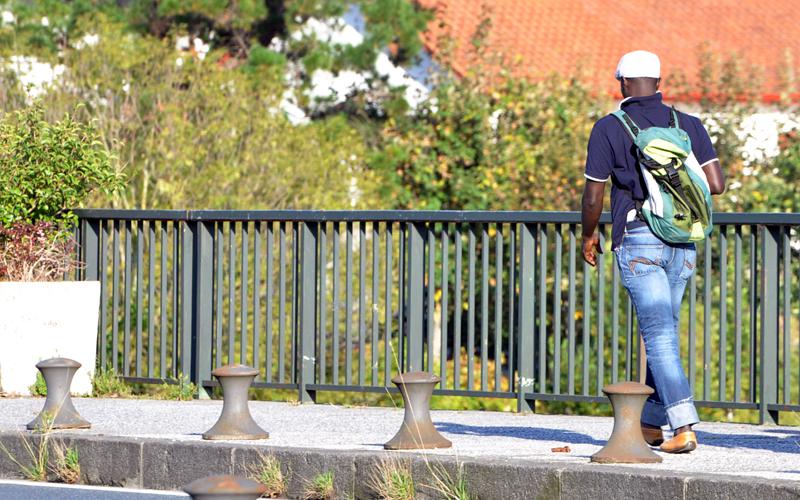 Errefuxiatu bat, asteazken arratsaldean, Santiago zubia zeharkatzen