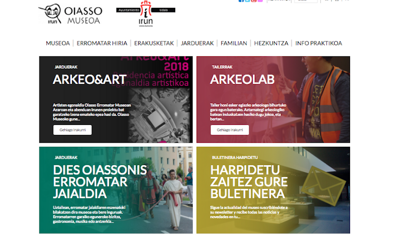 Oiasso Erromatar Museoaren webgunea berritu dute, irudi berria du, eta horrekin batera museoak sortzen dituen edukiak argiago eta hobeto daude sailkatuta. Erabilgarriago da. Dinamismoari garrantzia eman diote diseinuan, eta interakziorako aukera zabalak ditu. Aurrekoak 12 urtez eman du zerbitzua. Aro berri batean sartu da museoa, beraz.