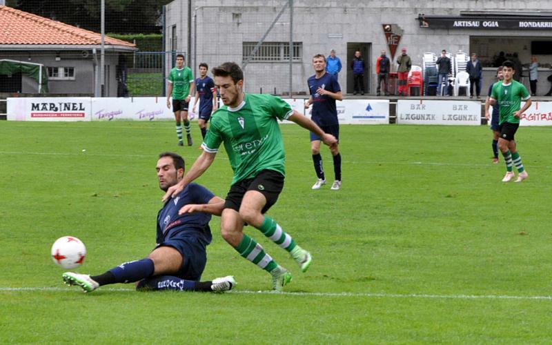 Bergarak eskatuta, goizez jokatu zuten —normalean bazkalostean jokatzen ditu Hondarribiak etxeko partidak—. Harmailetan ohi baino jende gutxiago zegoen arren, nonbait, zortea eman zien ordutegiak jokalariei, eta denboraldian lehen aldiz besoak altxatu zituzten epaileak amaiera seinalatu zuenean. Imanolek (58. minutuan) eta Xabik (66.ean) egin zituzten etxekoen bi golak.