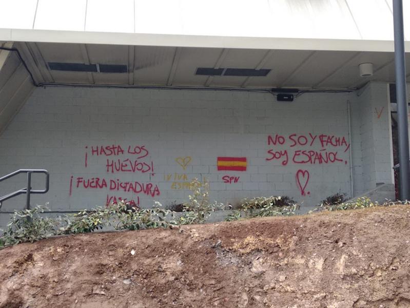 union1915fans talde antifaxistari keinu eginez. Horrez gain, hainbat Espainiako bandera margotu dituzte, hainbat esaldirekin batera.