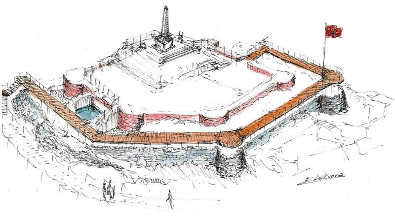 Marrazki bakoitzean alderdi hezitzailea txertatzen zuen Lekuonak. Irudian, Amaiurko indusketetan eginiko bat