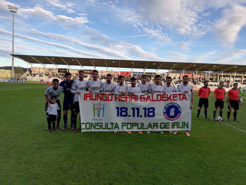 Atzo Real Unioneko jokalariek babesa erakutsi zioten azaroaren 18ko herri galdeketari Santanderko Racingen kontra Stadium Galen jokatutako partiduan.