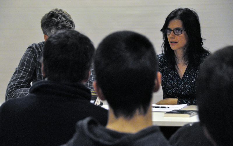 Kultur Etxeko aretoa bete egin zen Maite Darcelesen solasaldirako