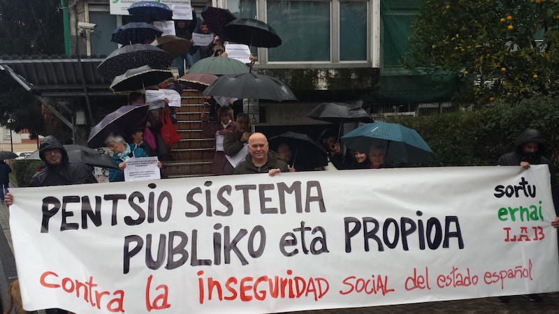 - Gorputz eta arimaz injustizia neoliberal berri honi aurre egin eta pentsio duinen alde borrokan dabilen orori hausnarketa deia egin nahi diogu. Egungo Estatu Espainiarrean minimo horiek lortzea posible den pentsatzera, eta ezekoaren kasuan, estatuko beste herriekiko elkartasun printzipioa galdu gabe, euskal pentsio sistema eta lan harreman marko propio baten aldeko prozesu subiranistara batzeko deia egiten dugu. Justizia soziala bermatuko duen euskal demokrazia herritarrarengatik.