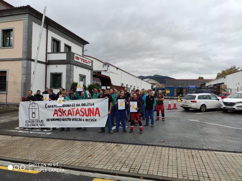 Irungo udaletxeko elkarretaratzea. Gehiengo sindikalak (ELA, LAB, Steilas, ESK, Etxaldek eta HIRU) gaurko deituriko elkarretaratzeak Irunen ere egin dituzte. Astelehenan Espainiako Auzitegi Gorenak Kataluniako politikari independentisten kontra emandako epaiaren harira, egin dituzte mobilizazioak Oarso Bidasoan, eta Euskal Herrian.