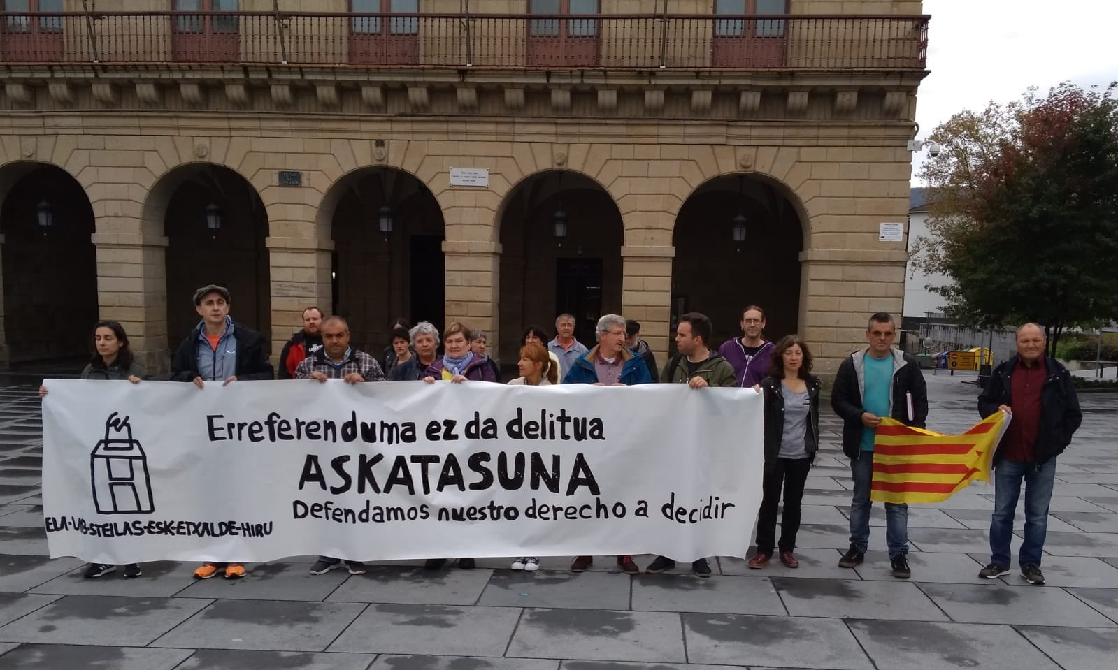 Irunen elkarretaratzeak egin dituzte udaletxearen aurrean eta hainbat enpresatan, Kataluniako politikari independentisten kontrako epaiaren harira.