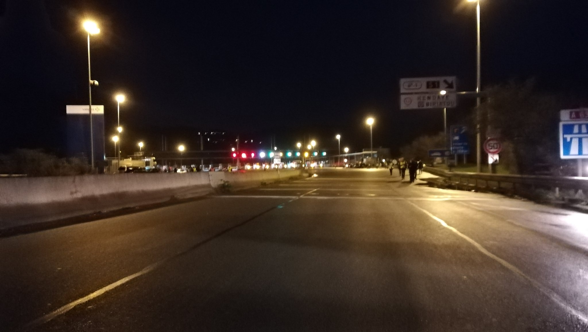 Han, AP8 errepidea hartuta, Biriatuko muga kolapsatzeko. Gauza bera egin nahi izan dute beste noranzkoan, eta Ipar Euskal Herriko hainbat lagunek Urruñan jarri dute zita.