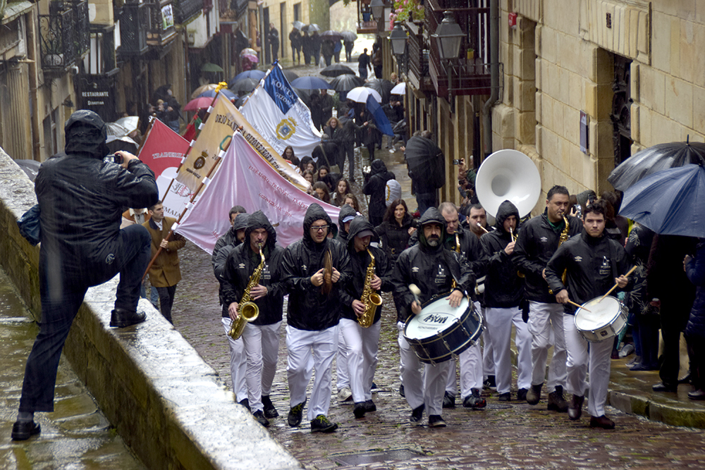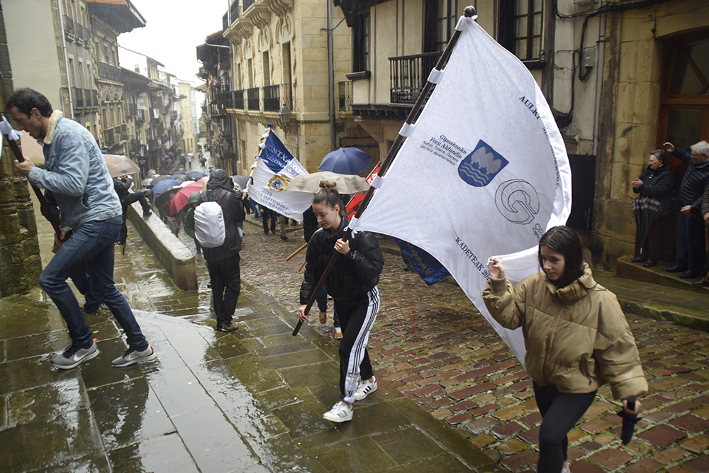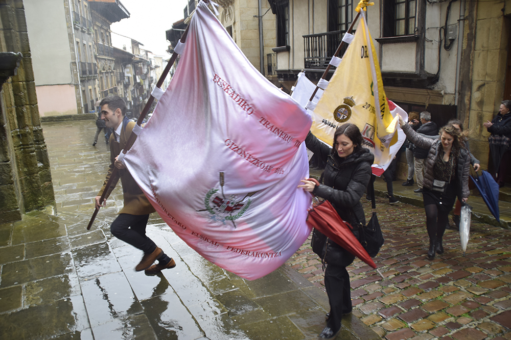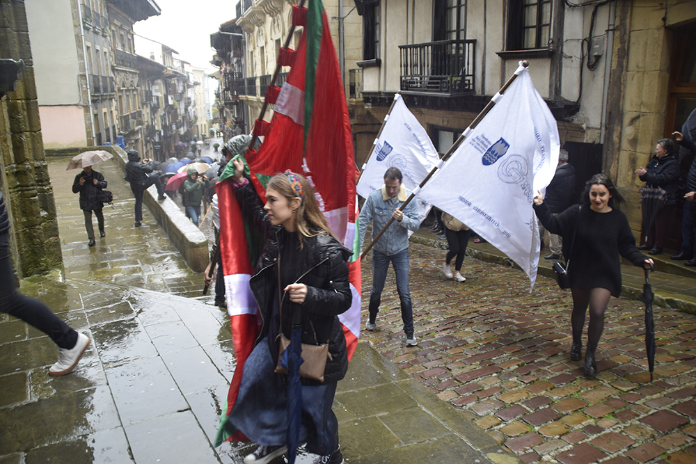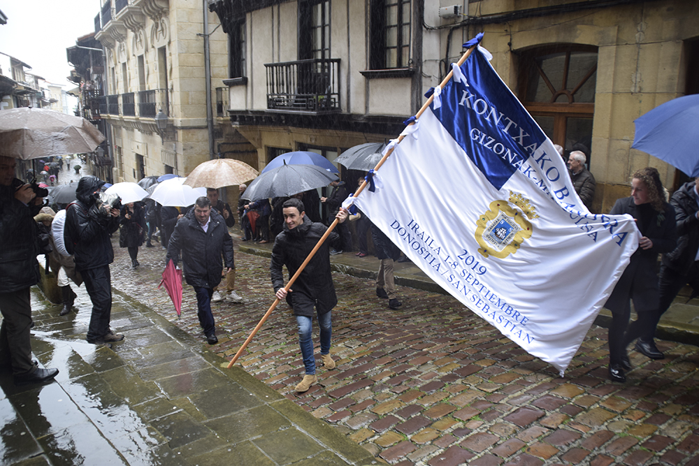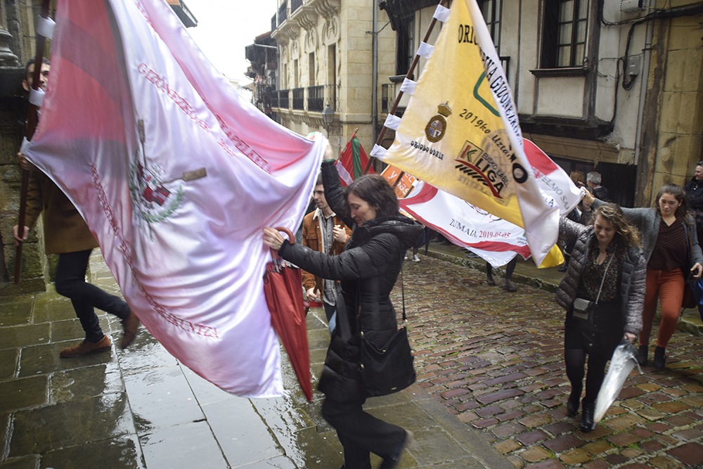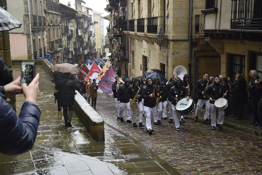Kale Nagusiko parrokian bedeinkatu dituzte. Hondarribia Arraun Elkarteak aurten eskuratu dituen banderak bedeinkatu ditu gaur. Orotara, hamar irabazi dituzte gizon zein nesken taldeek. 12:30ean heldu dira Kale Nagusiko parrokiarra, Abiyuan Fanfarreak bidea girotu duen bitartean. Bedeinkapen ekitaldian, kirolari eta zuzendaritzako kideez gain, Arrantzale Kofradiako ordezkariak eta udal hautetsiak izan dira.