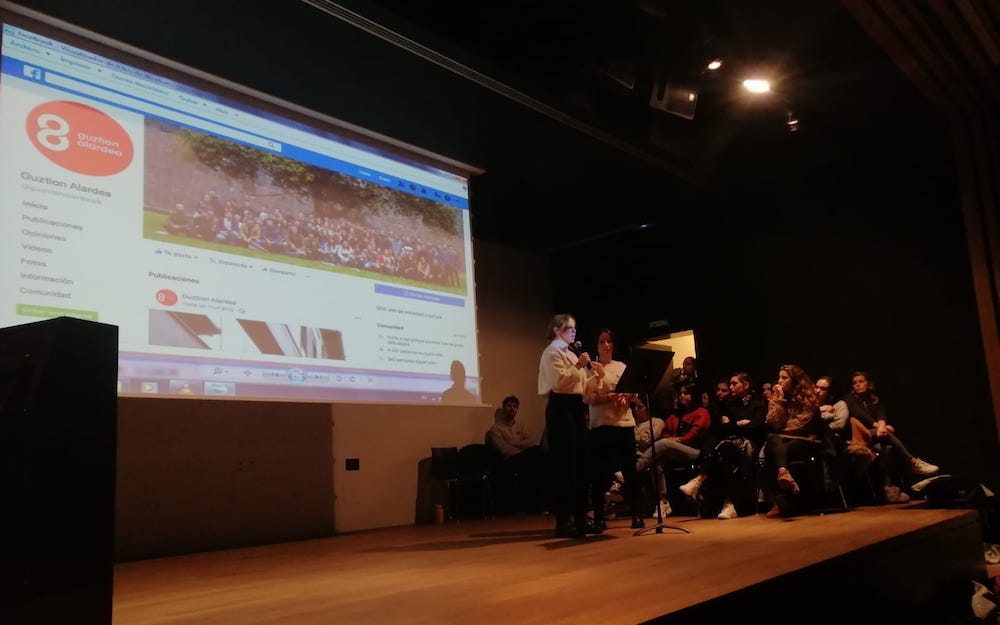 Guztion Alardea gatazkaren konponbidearen alde sortutako taldearen aurkezpena Kultur Etxean. Txalo zaparrada jaso du Guztion Alardea taldeak gaur arratsaldean Kultur Etxearen areto nagusian egindako aurkezpenean. Argi utzi dute gazteek alardea Hondarribiko ondarearen parte dela, emakume zein gizonena, eta beraz, emakumeak soldadu gisa onartzen dituen desfilea dela konponbide bakarra. Are gehiago, emakumeek nahi duten moduan alardean parte hartzeak ez duela gainontzeko herritarrek alardea gozatzeko duten eskubidea baldintzatzen ohartarazi dute.