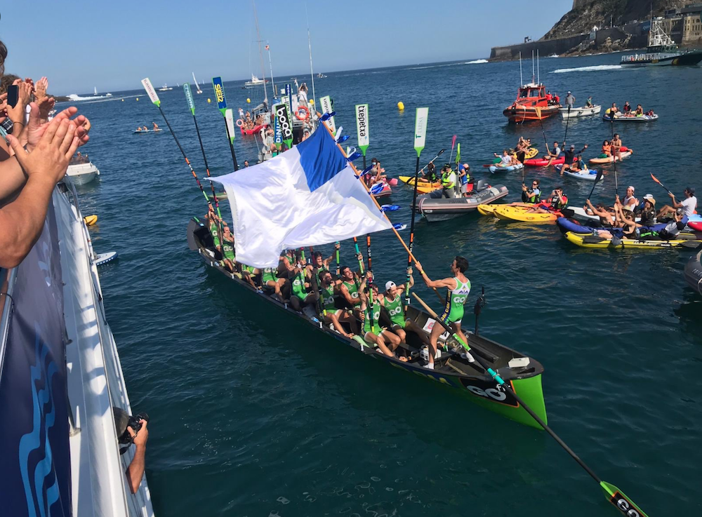 Garaipen handiari tamainako harrera egin zieten atzo hondarribiarrek. Jende pilaketa handirik ez, ospakizun arraroan. Irunen ere egin zieten harrera.