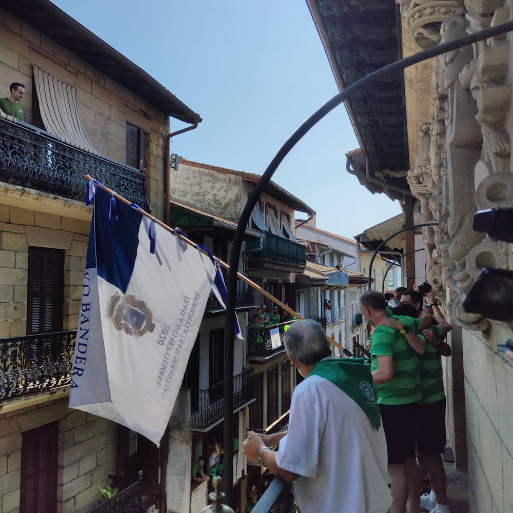 - Bandera hartu berritan, atzo. Argazkia: Festak Donostia.