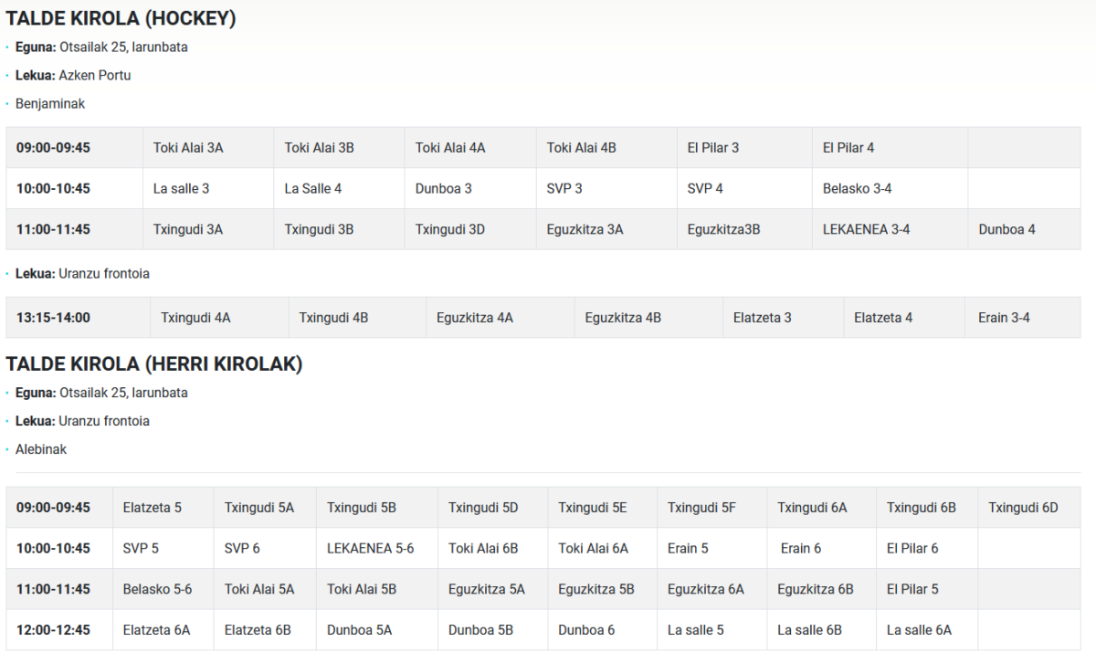 Irungo Eskola Kirola egitasmoaren otsailaren 25eko ordutegiak eskuragarri daude. Horiek HITZAren webgunetik deskarga daitezke.