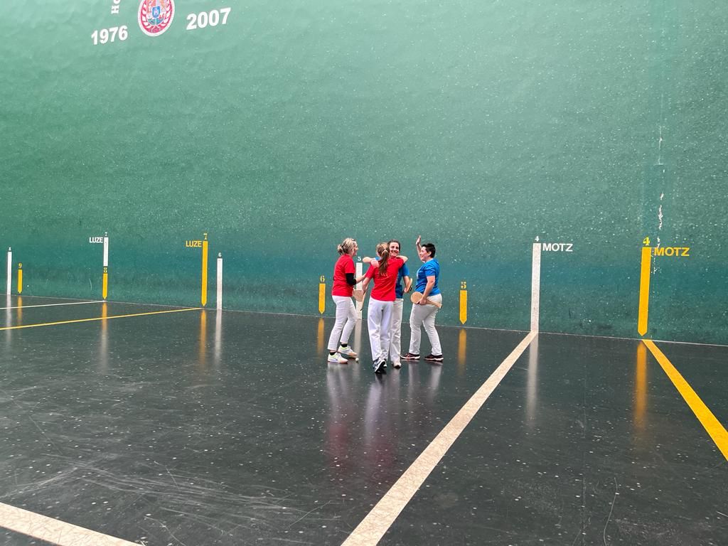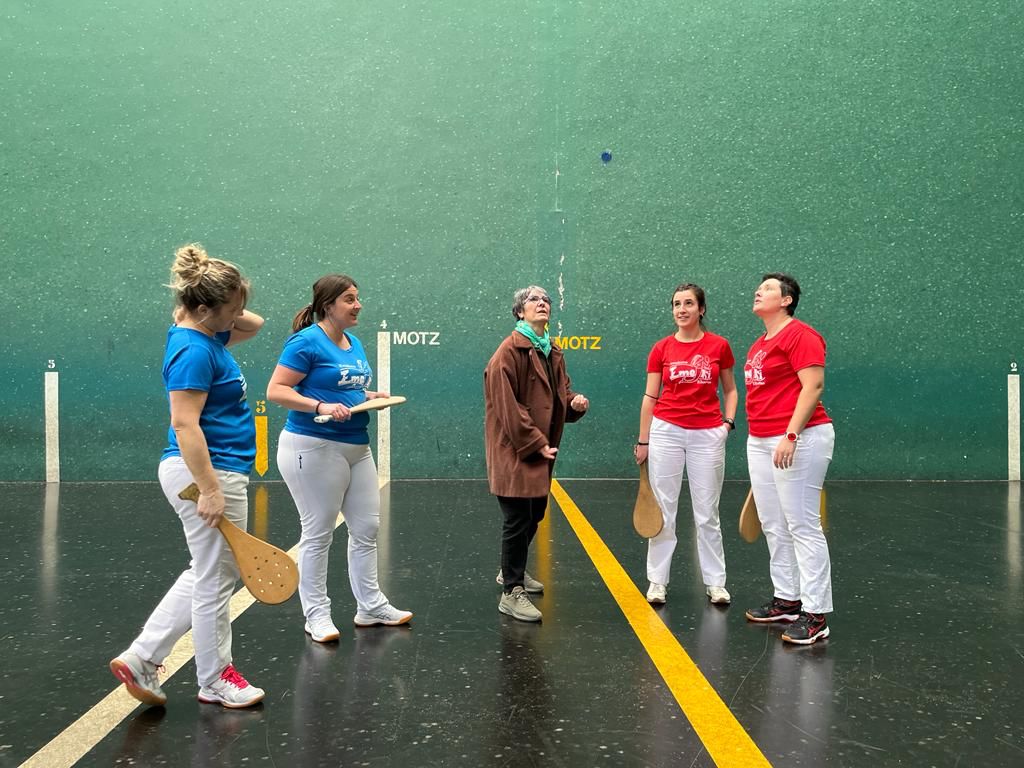 Maite Mariezkurrena Miranda eta Zuraide Telletxea Zubeldia (talde gorria) eta Itsaso Iguiñiz Barrio eta Izaskun Amunarriz Izagirre (talde urdina). Joan den larunbatean egin zuten Bixi-Bixi Pala Txapelketa Azkarra. Emeki elkarteak Hondarribiko Udalaren laguntzarekin antolatzen duen ‘Emakumeen astearen’ baitan antolatu zen, eta kasu honetan, Hondarribiko Pilota eskolaren laguntza izan zuten ere. Egunean bertan Emekiko bazkide batzuen lan bolondresari esker gauzatu zen txapelketa.