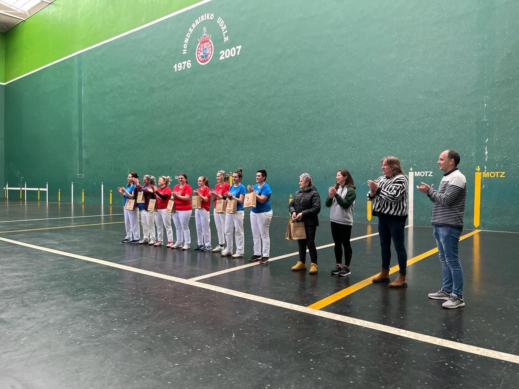 Emeki elkarteak Hondarribiko Udalaren laguntzarekin antolatzen duen Emakumeen astearen baitan antolatu zen, eta kasu honetan, Hondarribiko Pilota eskolaren laguntza izan zuten ere.