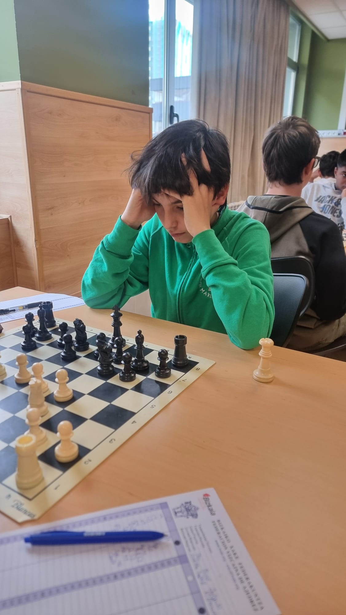 Iker Tafall saria jasotzen. Asteburu honetan Euskadiko txapeldun titulua izan da jokoan, kadete, jubenil, promesa eta absolutu mailan. Hilaren 3tik 6ra Adinetako Euskadiko Xake Txakelketan parte hartu zuten Jurgi Diazek (jubenil), Iker Tafallek (kadete), Jon Díazek (promesa) eta Gorka Tafallek (promesa), nor bere kategorian. Aritz Tornayk, 2023an kadeteetan txapeldun izan zenak, gaixo zegoelako ezin izan zuen parte hartu. Euskadiko Txapelketa Absolutuan, berriz, German Herrera eta Josu Tornay izan ziren klubeko ordezkariak.