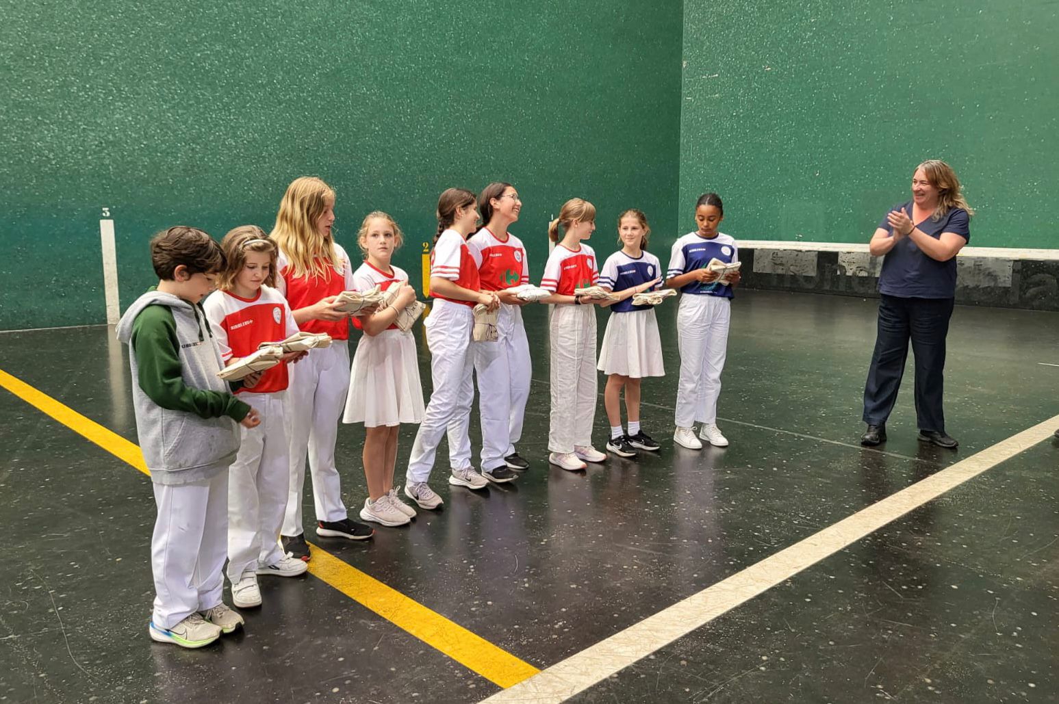 Sari banaketaren aurretik Emeki elkarteak Hondarribiko pilota eskolarekin elkarlanean martxan jarri zuen hastapeneko pala eskolako gazteak izan ziren protagonista. Batez ere neska gazteak ahalduntzeko eta pala modalitatera gerturatzeko sortu zuten eskola hori, nahiz eta mutilek ere izena eman dezaketen. Horretarako, Maider Mendizabal lehen mailako palistarekin saio praktikoak antolatu zituzten herriko hiru eskoletan. Egun 11 neska eta 3 mutil daude taldean.