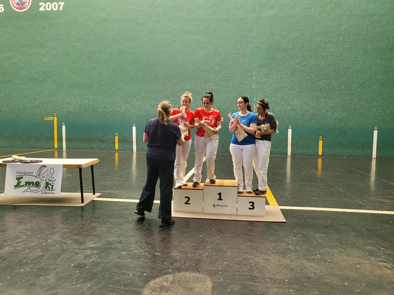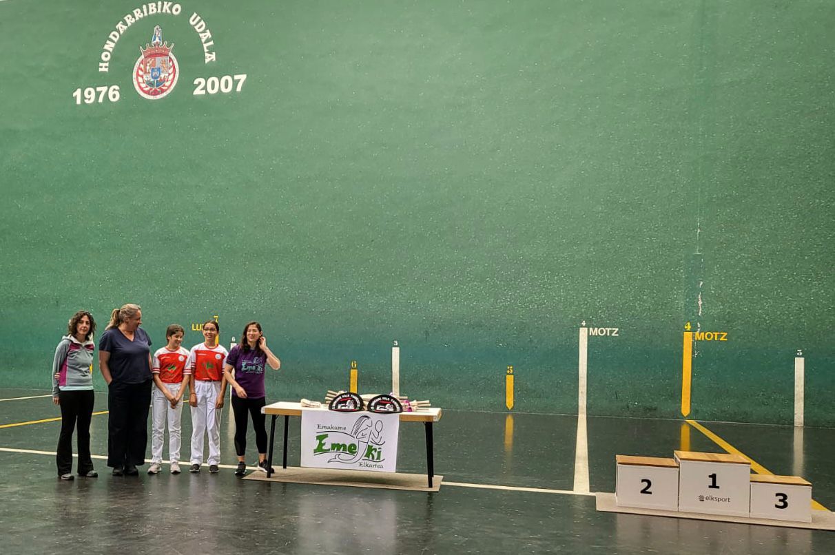Ikasturtea amaitu berri erakustaldi gisa hainbat partidu jokatu zituzten. Horiek amaitzerakoan Lupe Queirugak, Kirol zinegotziak, Emekik haurrentzat prestaturiko telazko motxilak banatu zizkien. Ondoren, txapelketaren sari banaketari ekin zioten. Hirugarren saria Amaia Urkitzak eta Eukene Sagarzazuk jaso zuten. Ainhoa Martinezek, EAJko zinegotziak, eman zien oroigarria. Bigarren saria Izaskun Zubieta eta Aloña Zabalarentzat izan zen. Saria Lupe Queiruga Kirol zinegotziak banatu zien. Azkenik, lehen postuan geratutako Agurtzane Berastegiri eta Loiola Zuazuri txapela jarri zien Tamara Sastrek (Emekiko Lehendakariak).