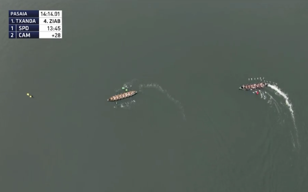 Estropada osoan txandako garailea izan zen Sanpedrotarrak ontziaren atzetik joan ziren laugarren ziabogara arte. Buia ababorretik hartu beharrean estriborretik hartu zuten, eta beraz, arraun egiteari gelditu eta zia egin behar izan zuten (aurreraka), ziaboga ondo gauzatzera iritsi arte.