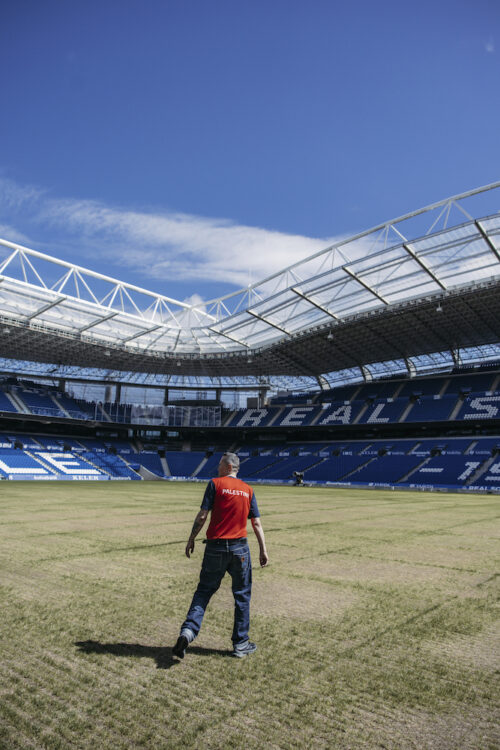 Anoeta estadio bat da. Propagandarako toki asko daude, LED pantailak barne. Horiek guztiak tapatu genituen, eta hemengo kolektiboekin adostu genuen pantaila eta propaganda toki horietan zer mezu jarri. Ni kolektibo horietako partaide ere banaiz. Hala, haiek eta haien mezuak presente izan ziren ere bai.