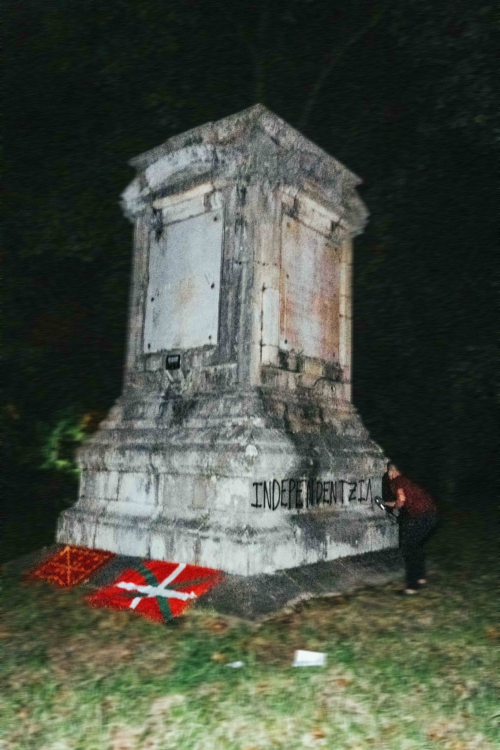 Monolitoan bertan, Independentzia lema margotu dute, ikurrina eta Nafarroako bandera ondoan zeuzkatela. “Gure herria zapaldua da, gure herria okupatua da, eta gazteok ozen aldarrikatu nahi dugu hau Euskal Herria dela” adierazi dute gazte independentistek.
