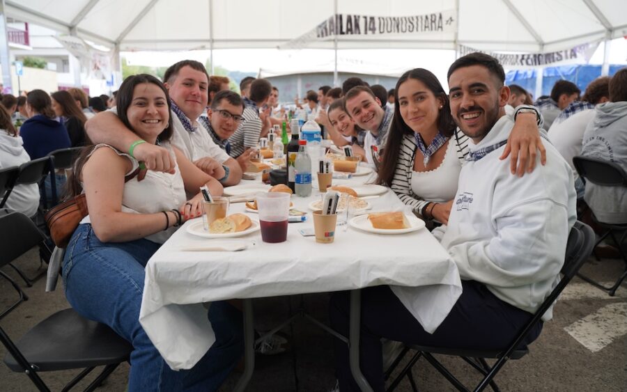 Arrantzalez jantzita noski, kalera irten dira gaur ere hondarribiarrak. Gazteek herri bazkaria egin dute Bentan; adinekoek, berriz, kiroldegian hartu dituzte indarrak.