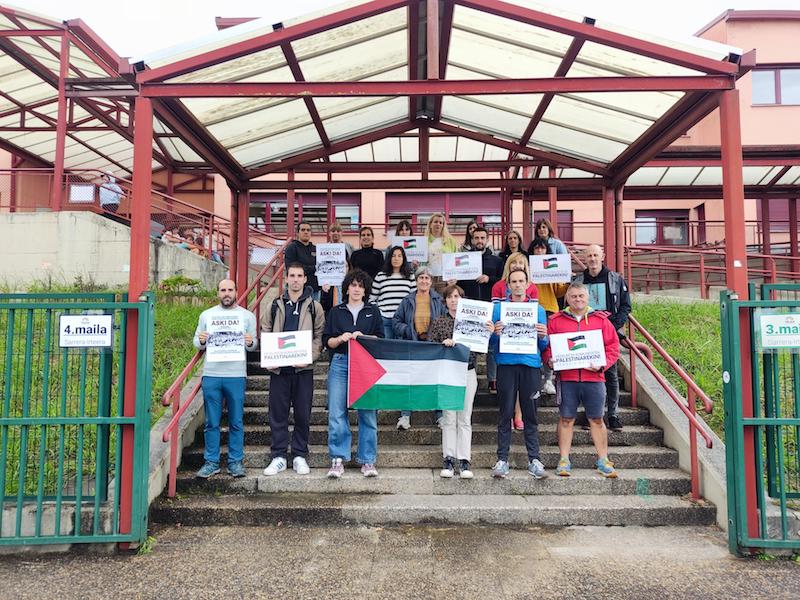 Gure Haurrak Ere Badira plataformaren deiari jarraiki elkarretaratzeak egin zituzten atzo ikastetxeen atarian.