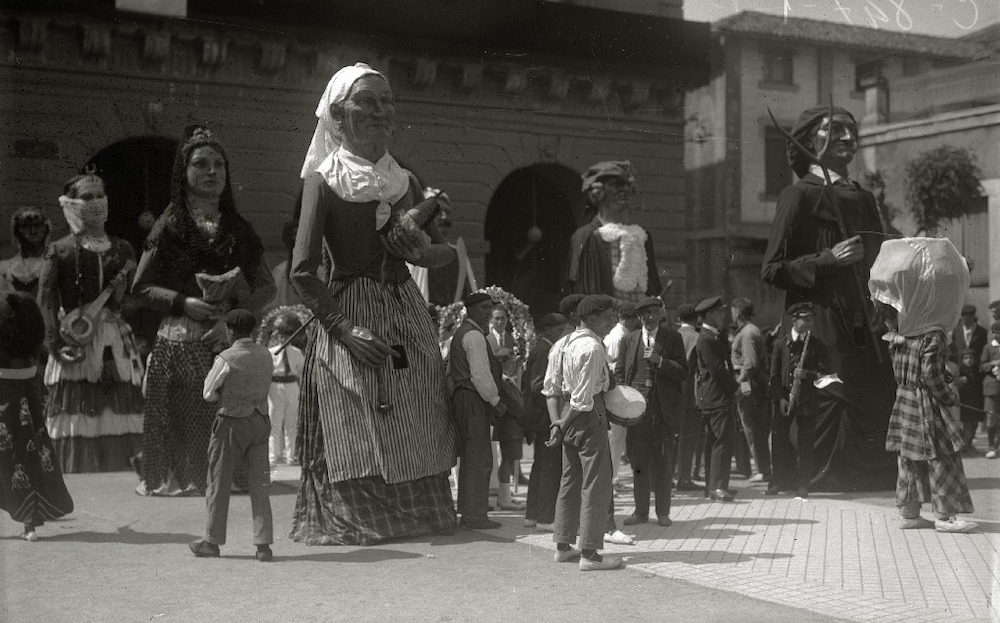 “Erabaki honek inflexio puntu bat dakar konpartsaren ibilbidea, hiriaren zaharrenetako eta maitatuenetako batean”, hasi dira testuan. Konpartsaren lehen pausoak XIX. mendean daude, eta zenbait dokumentutan agertzen denez, 1920tik desfilatzen dute erraldoi eta buruhandiek Irungo kaleetan. Ofizialki, alabaina, elkarteak konpartsa 1937an jaso zuen. Ildo horretatik, nabarmendu dute erraldoi eta buruhandien presentzia sendotu egin dela udal ospakizun nagusietan, “bereziki San Pedroko prozesioan”.