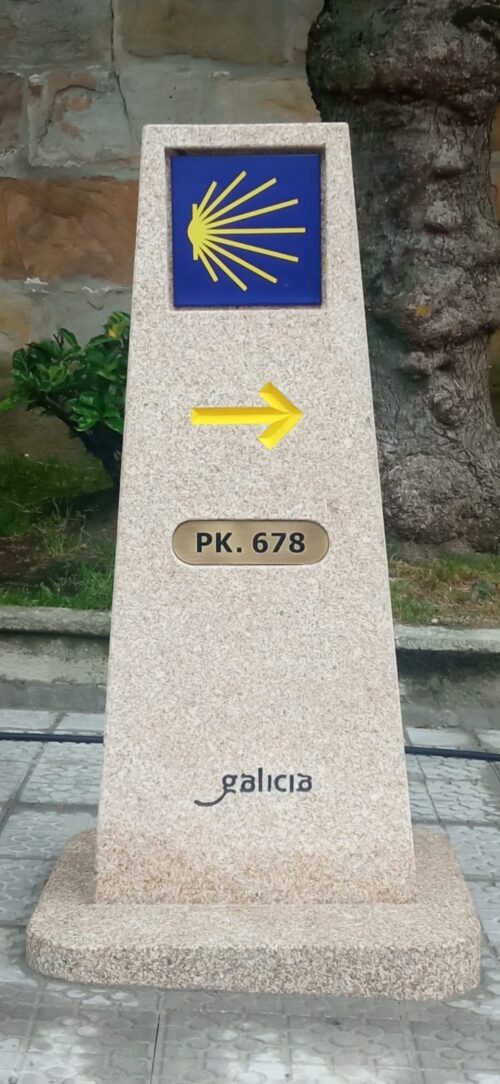Aipatu dutenez, ikur hori Abenida zubitik gertuen dagoen lorategian jarriko dute, Santiagoko mugaren ondoan, alegia. Era berean, jakinarazi dute piezak aurrealdean bi sinbolo nagusi dituela, gezi horia eta bieira maskorra, hurrenez hurren, bigarren hori bide ofizialerantz orientatuta.
